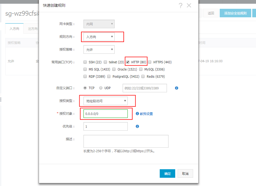 备注:以上设置方法是最为简单的一种,详情建议参考阿里云官方的安全组文档进行更为安全、精准的设置。