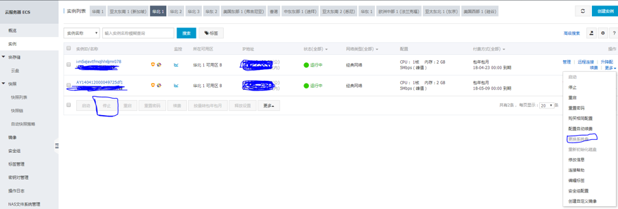 登录到阿里云管理控制台,在”实例“中先停止服务器,然后在服务器这行的最右一列点击打开“更多”,再在弹出的菜单中选择“