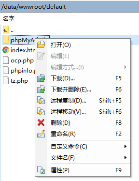 右键单击服务器上一个文件或文件夹,可以对云服务器进行多种操作