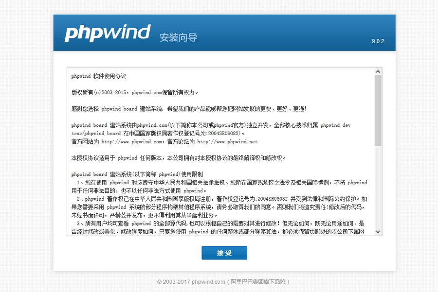 chown -R apache.apache /data/wwwroot/default进入PHPWind安装向导
