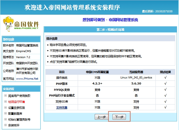 chown -R apache.apache /data/wwwroot/default进入EmpireCMS安装向导