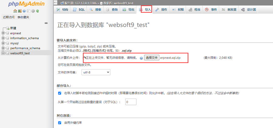 恢复数据库,对应的是“导入”操作,具体参考下图