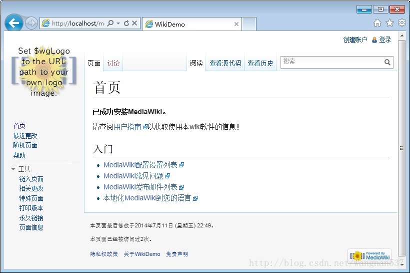 系统完成最后一步安装,建议进入MediaWiki后台(以管理身份登录即进入后台),体验完整功能
