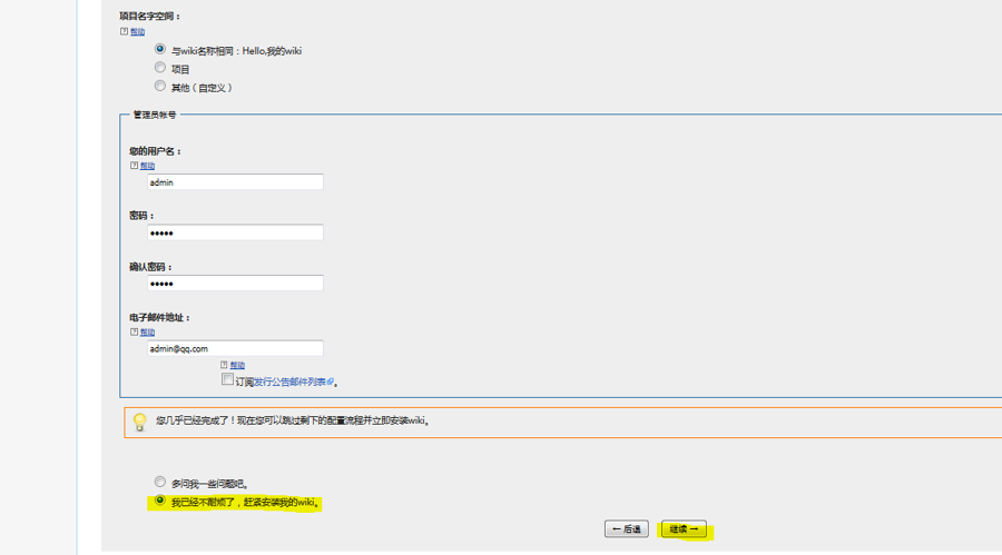 开始安装MediaWiki