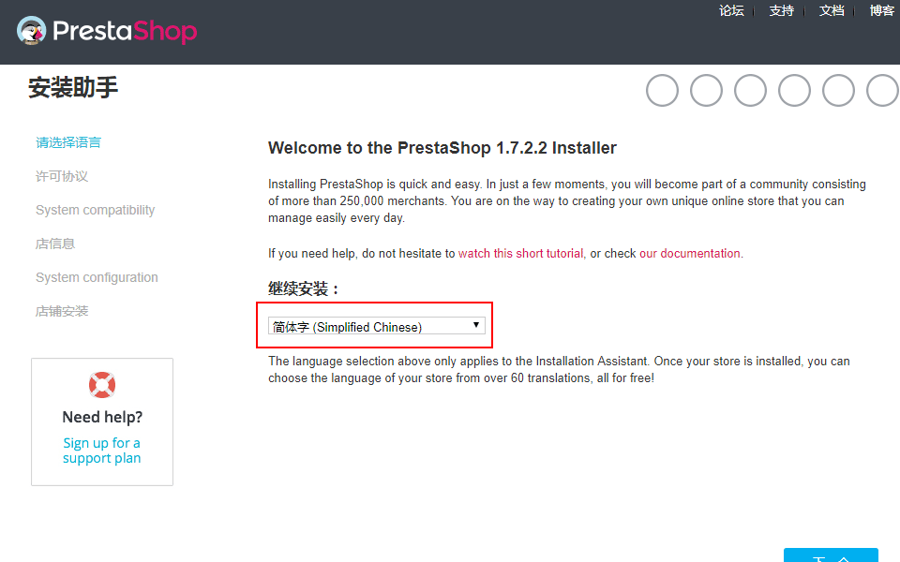 镜像验证通过后,即可根据9Panel(浏览器访问:http://公网ip/9panel)的提示完成剩余的应用安装过程。 建议在进入PrestaShop的安装界面之前,建议完成如下两个简单的操作: