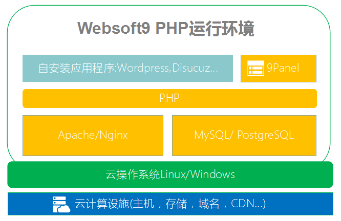 Websoft9的镜像由应用软件和运行环境组成: