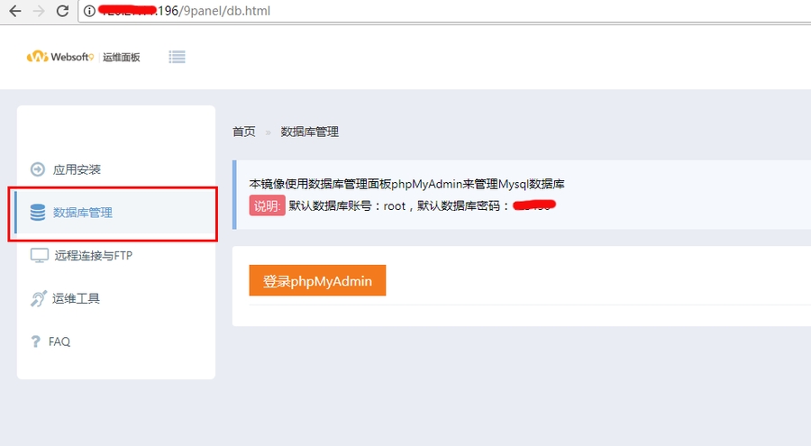 Websoft9镜像默认安装了可视化MySQL工具phpMyadmin: